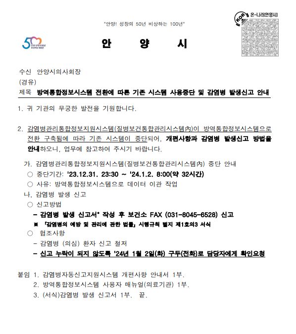 ¹æ¿ªÅëÇÕÁ¤º¸½Ã½ºÅÛ Àüȯ¿¡ µû¸¥ ±âÁ¸ ½Ã½ºÅÛ »ç¿ëÁß´Ü ¹× °¨¿°º´ ¹ß»ý½Å°í ¾È³»