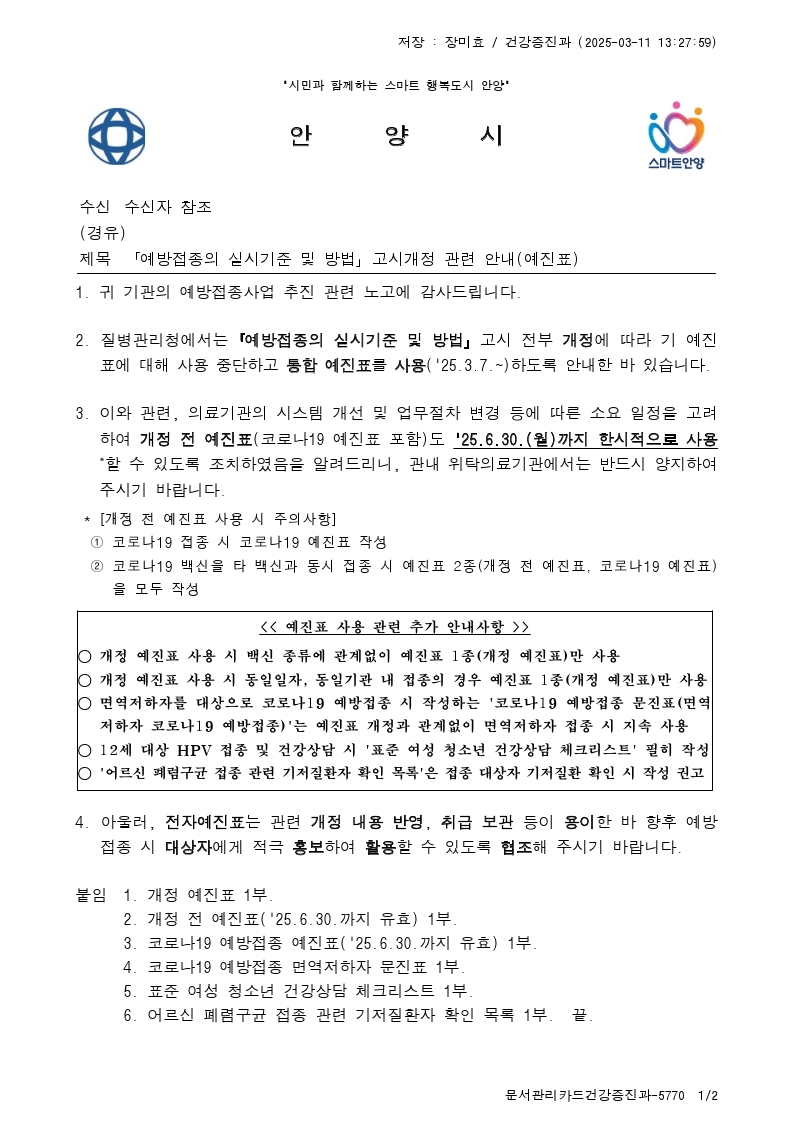 (°³Á¤ Àü ¿¹ÁøÇ¥) [º°Áö 1] ¿¹¹æÁ¢Á¾ ¿¹ÁøÇ¥(6¿ù 30ÀϱîÁö À¯È¿).hwp